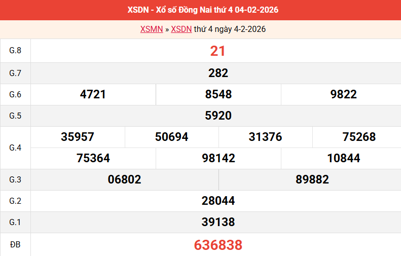 ✅ 4. Xem lại KQXSDN ngày 04/02/2026
