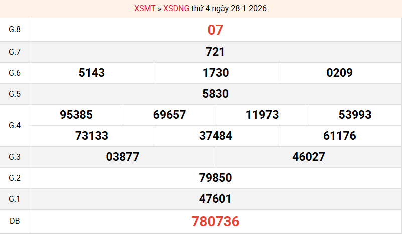 KQXSDNG ngày 28/01/2026