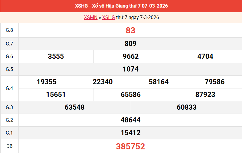 ✅ 4. Xem lại KQXSHG ngày 07/03/2026
