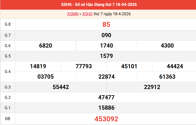 ✅ 4. Xem lại KQXSHG ngày 18/04/2026