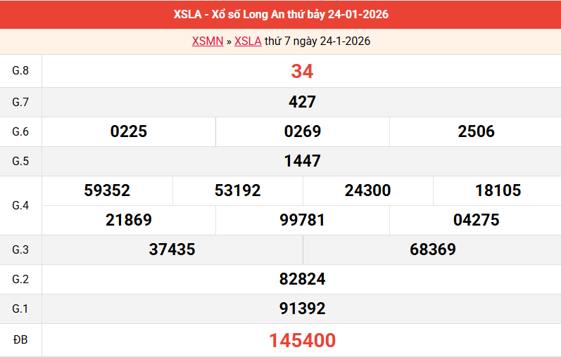 ✅ 4. Xem lại KQXSLA ngày 24/01/2026