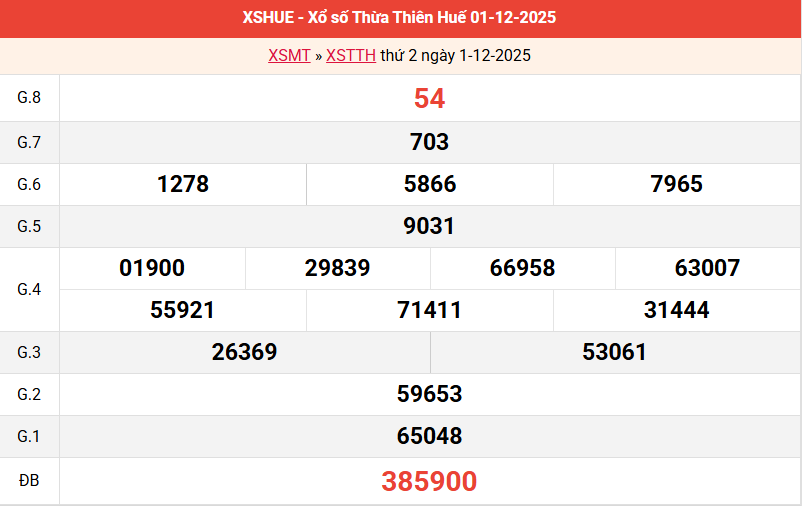 1. Thống kê xổ số Thừa Thiên Huế 07/12/2025