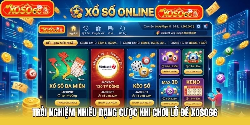 Trải nghiệm nhiều dạng cược khi chơi Lô đề Xoso66