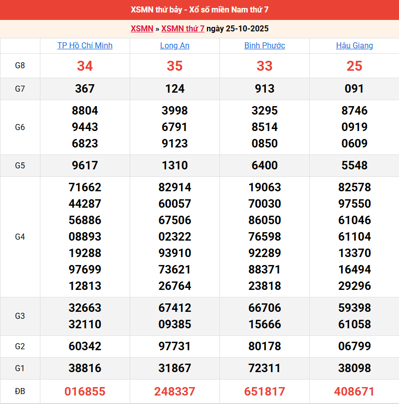 Bảng kết quả xổ số miền Nam ngày 25/10/2025