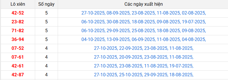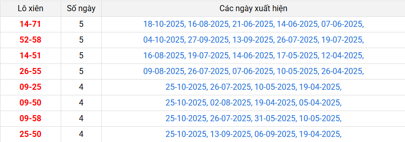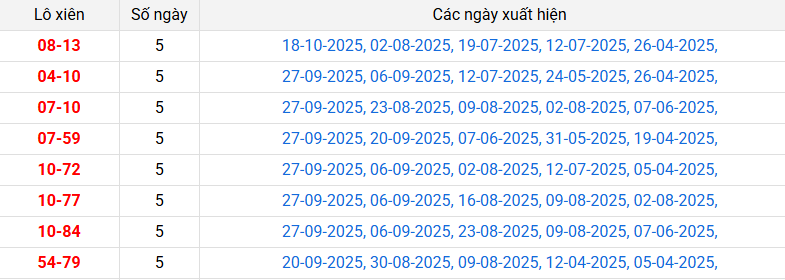 ⭐ Cặp số lô tô về nhiều nhất: 10 - 07 - 79 - 02 - 14