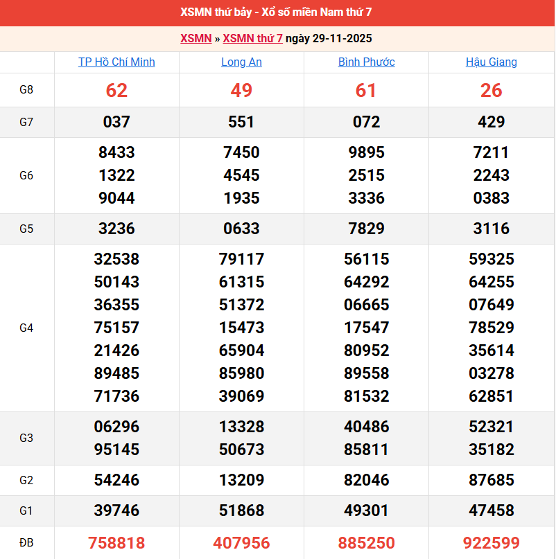 ✅ 5. Xem lại bảng kết quả xổ số miền Nam ngày 29/11/2025