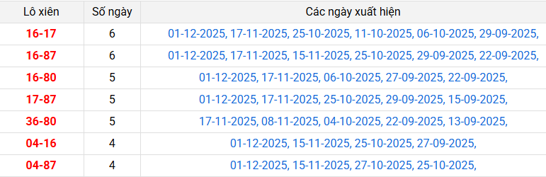 ⭐ Cặp số lô tô về nhiều nhất: 16 - 36 - 73 - 87 - 17