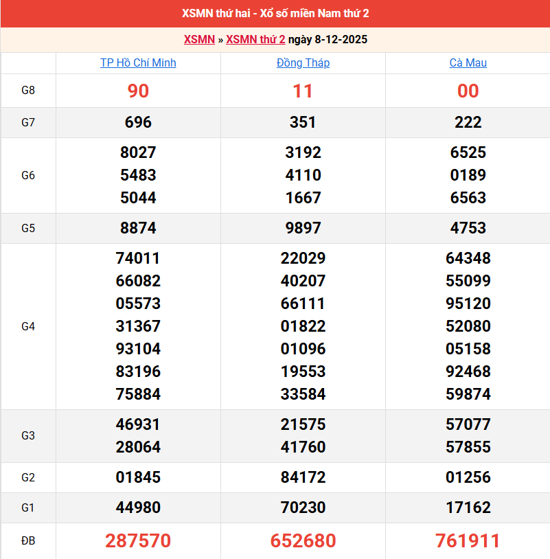 ✅ 4. Xem lại kết quả xổ số miền Nam ngày 08/12/2025