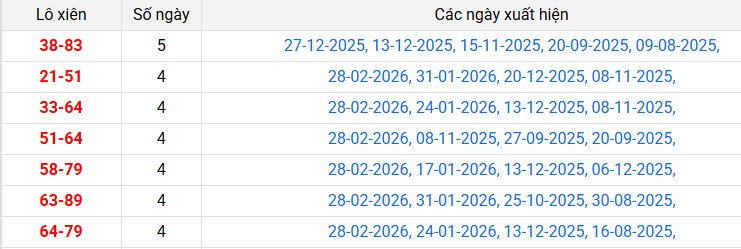 ⭐ Cặp số lô tô về nhiều nhất: 83 - 50 - 08 - 52 - 50