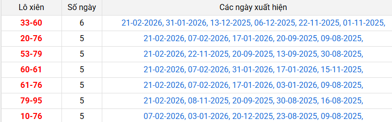 ⭐ Cặp số lô tô về nhiều nhất: 10 - 60 - 76 - 79 - 69