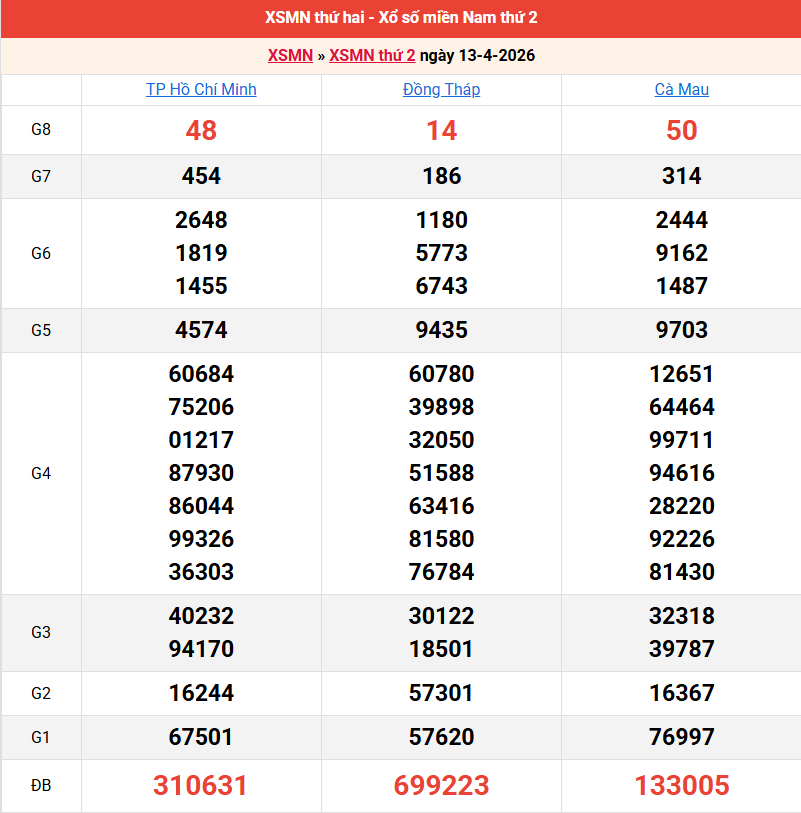 ✅ 4. Xem lại kết quả xổ số miền Nam ngày 13/04/2026