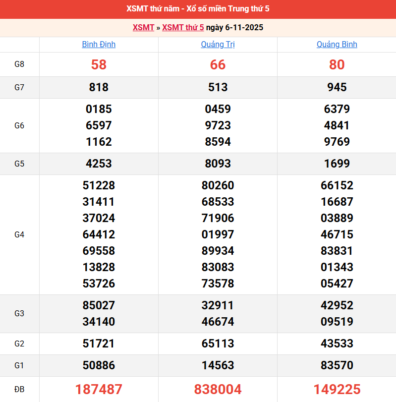 ✅4. Xem lại bảng kết quả xổ số miền Trung ngày 06/11/2025