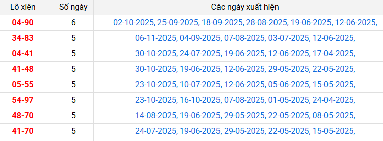 ⭐ Cặp số lô tô về nhiều nhất: 25 - 71 - 94 - 97 - 59