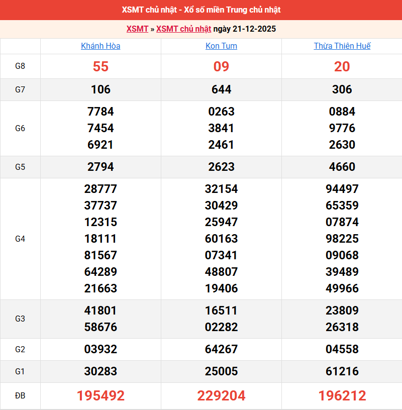 ✅ 4. Xem lại bảng kết quả xổ số miền Trung ngày 21/12/2025