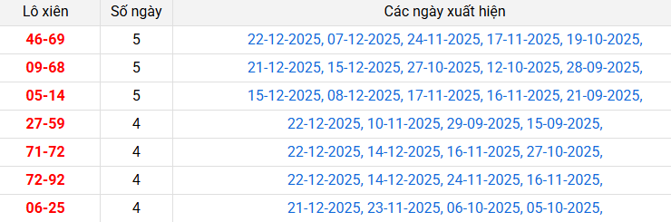 ⭐ Cặp số lô tô về nhiều nhất: 05 - 79 - 24 - 59 - 27