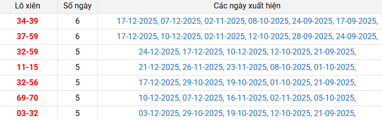 ⭐ Cặp số lô tô về nhiều nhất: 03 - 32 - 39 - 18 - 11