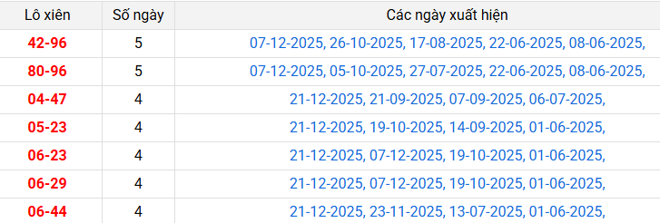 ⭐ 5 cặp số lâu về gần đây: 83 - 90 - 04 - 87 - 93