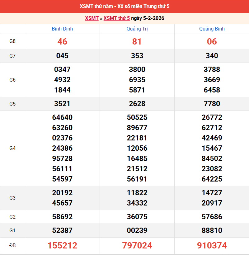 Bảng kết quả xổ số miền Trung ngày 05/02/2026