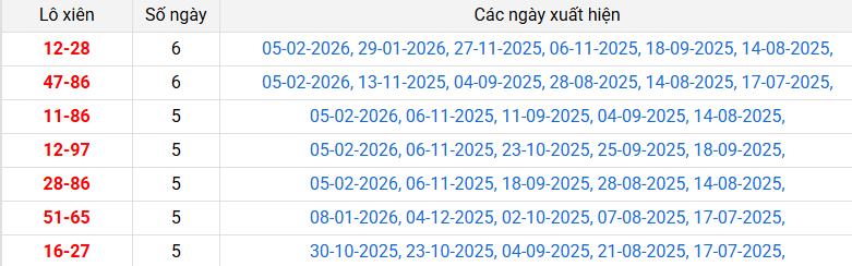 ⭐ Cặp số lô tô về nhiều nhất: 16 - 14 - 12 - 65 - 44