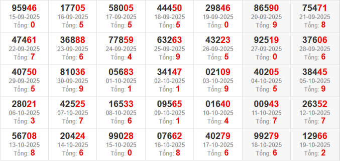 Thống kê theo tổng giải đặc biệt ngày 20/10/2025