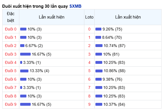 Bảng thống kê đuôi loto miền Bắc ngày 20/10/2025 |