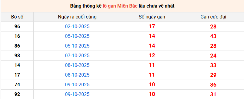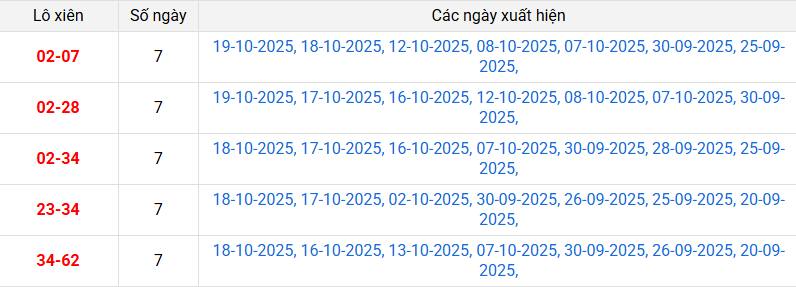 Thống kê lô tô gan miền bắc ngày 20/10/2025 |