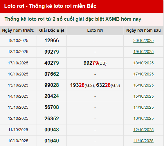 Thống kê lô tô rơi MB ngày 20/10/2025