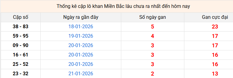 Thống kê cặp lô gan miền bắc ngày 24/01/2026 |