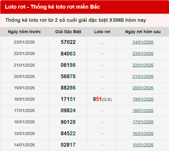 Thống kê lô tô rơi MB ngày 24/01/2026