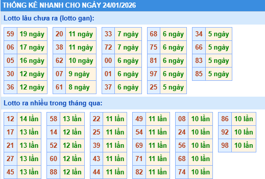 Thống kê lô gan ngày 24/01/2026