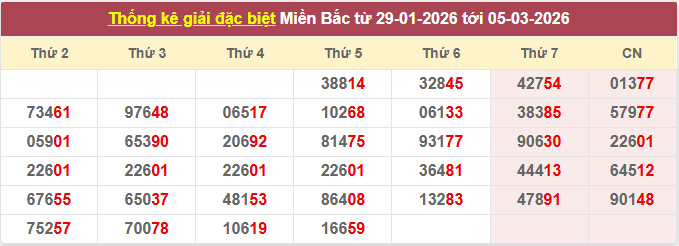 ✅ 2. Thống kê kết quả giải đặc biệt xổ số miền Bắc ngày 06/03/2026
