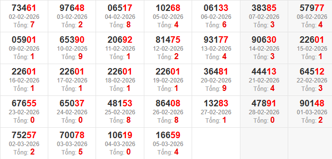 Thống kê theo tổng giải đặc biệt ngày 06/03/2026