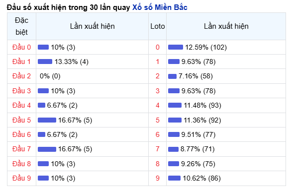 Bảng thống kê đầu loto miền bắc ngày 06/03/2026 |