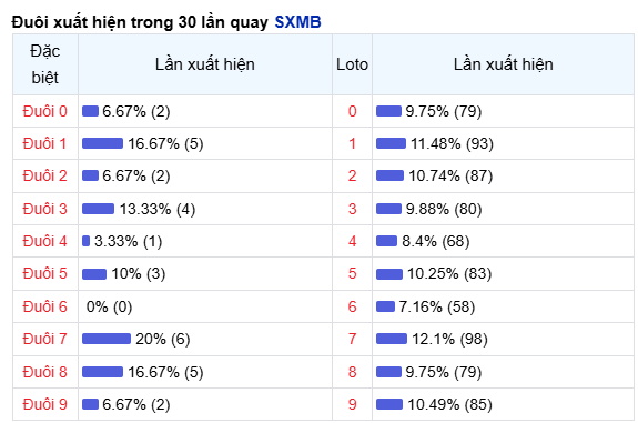 Bảng thống kê đuôi loto miền Bắc ngày 06/03/2026 |