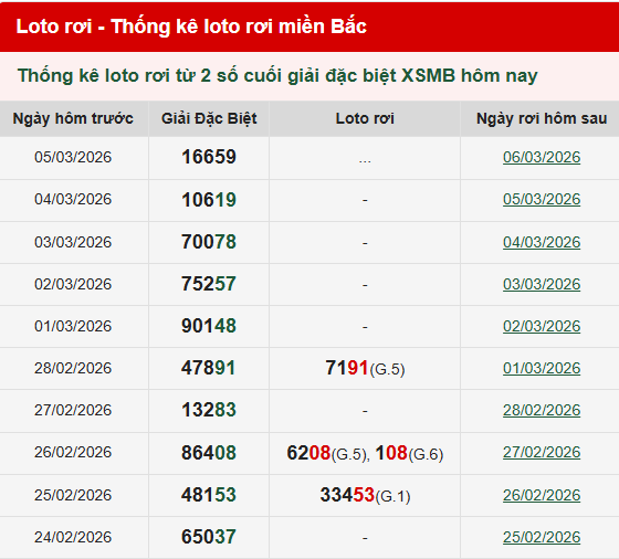 Thống kê lô tô rơi MB ngày 06/03/2026