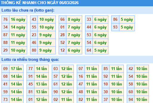 Thống kê lô gan ngày 06/03/2026