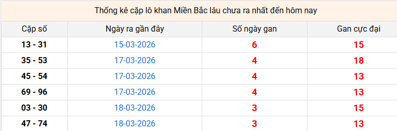 Thống kê cặp lô gan miền Bắc ngày 22/03/2026 lâu chưa về