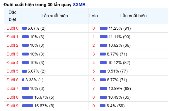 Bảng thống kê đuôi loto miền Bắc ngày 22/03/2026 |