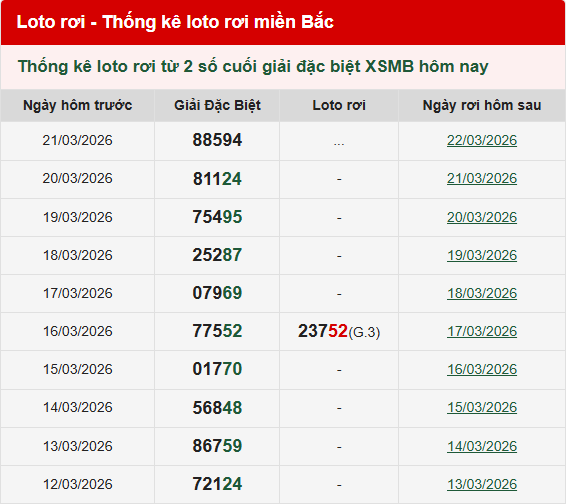 Thống kê lô tô rơi MB ngày 22/03/2026