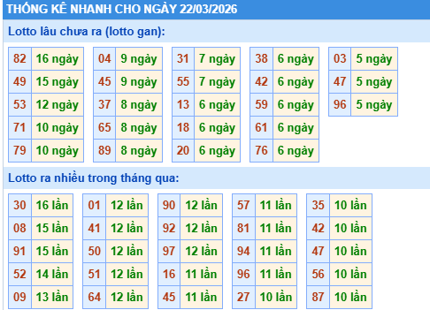 Thống kê XSMB ngày 22/03/2026 - Thống kê VIP XSMB - Thống kê tần xuất lô tô, lo gan xổ số Miền Bắc - chính xác và đầy đủ nhất chiều tối hôm nay, ngày mai